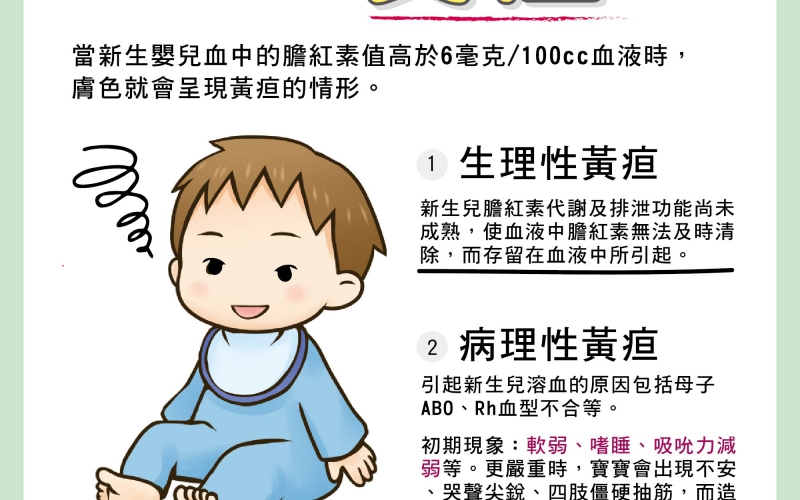 (關鍵字:新生兒黃疸、膽紅素、生理性黃疸、病理性黃疸、照光治療、換血治療、黃疸)